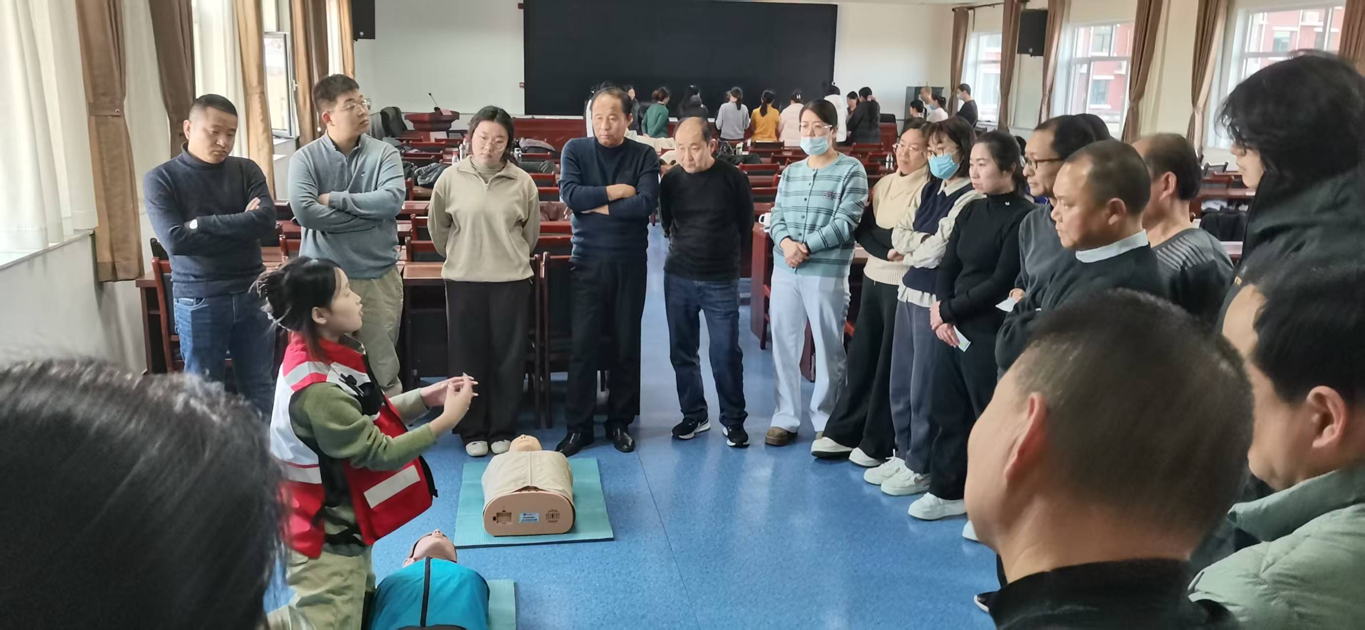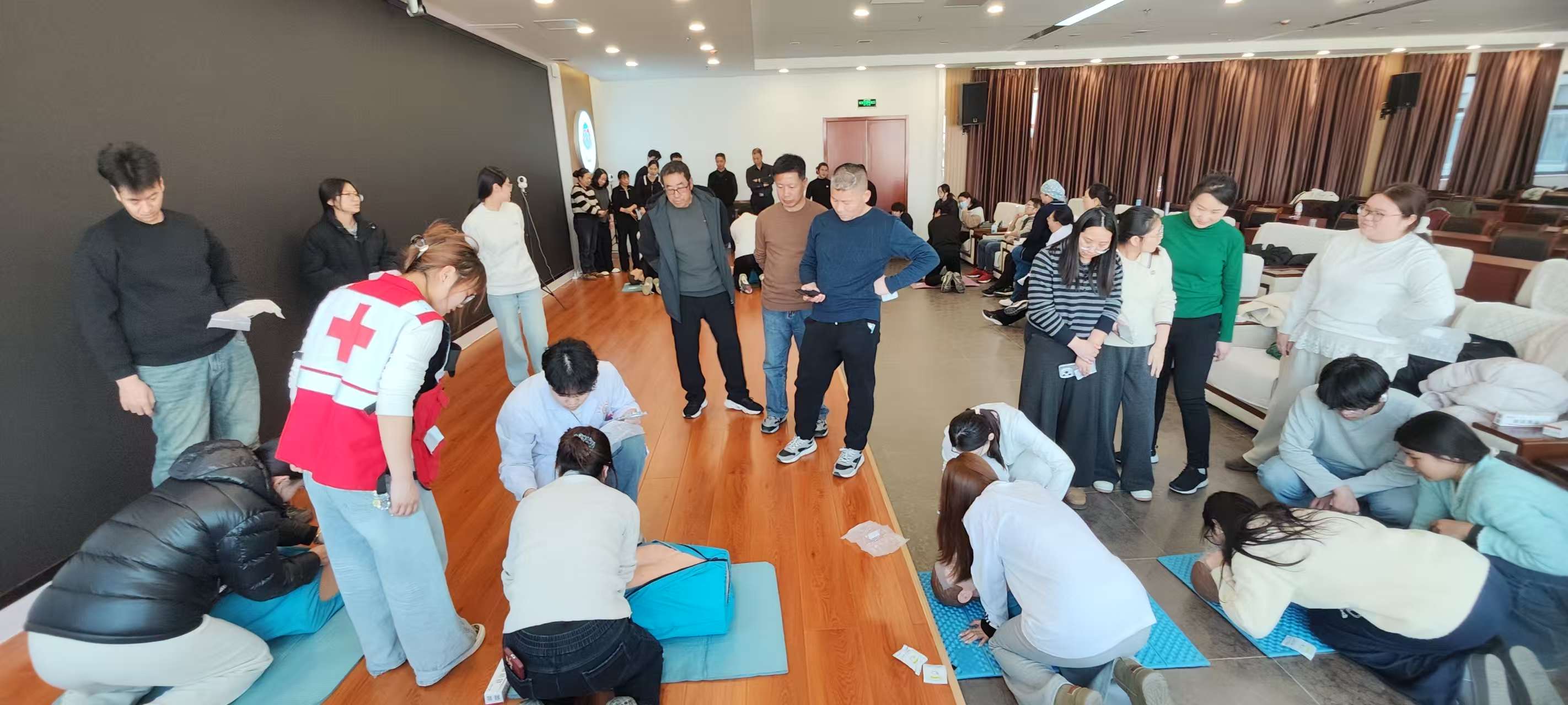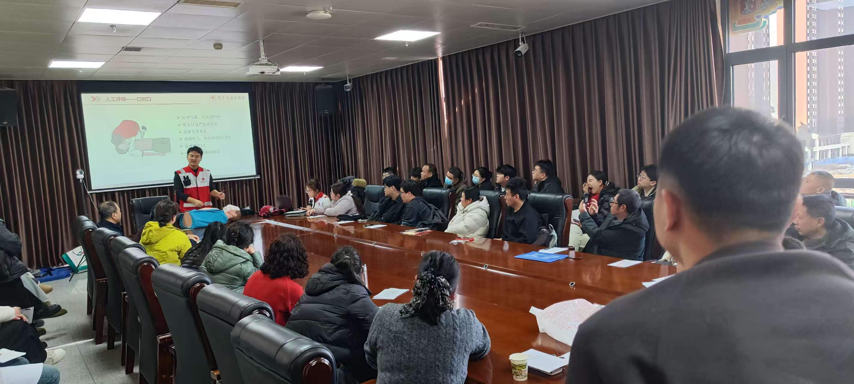 培训结合春节期间出行、居家、聚餐的安全特点,定制化设计教学内容。资深救护讲师以理论+实操双轨教学,先普及红十字救护理念,再重点讲解春节高发意外处置:聚餐时气道异物梗阻的海姆立克急救法、居家轻微灼伤处理、磕碰的止血包扎固定等,特别重点讲解了心肺复苏(CPR)与AED操作核心要领。
