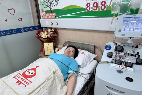 很快,到了捐献的日子。1月19日,河北医科大学第三医院的采集室里,仪器轻声运转,血液从小谢的身体里缓缓流出,经过分离提取,又流回她的体内。这个过程持续了四个多小时,她始终平静地躺着,偶尔与身边的医护人员轻声交谈,脸上带着淡淡的微笑。
